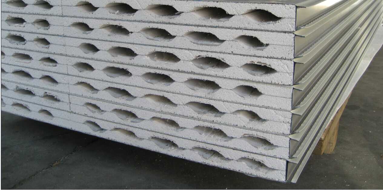 中空玻鎂彩鋼夾芯板以二層5mm防火玻鎂板、中間加防火玻鎂內(nèi)隔條為芯材,經(jīng)彩鋼夾芯板多功能連續(xù)生產(chǎn)線復(fù)合成型,中空玻鎂彩鋼夾芯板其特點(diǎn)...
